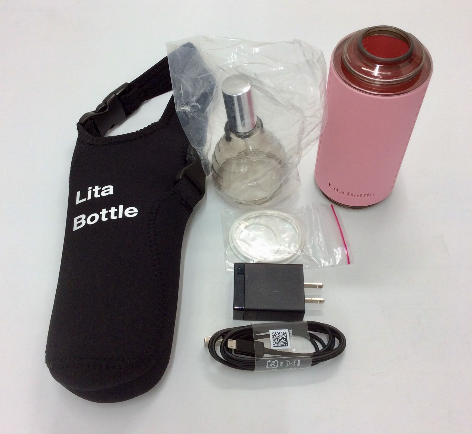 取扱説明書、ミストスプレーキット、スペアボトル、、シリコンカバー、保温ケース、ACアダプター、USBケーブル、パッキン×2