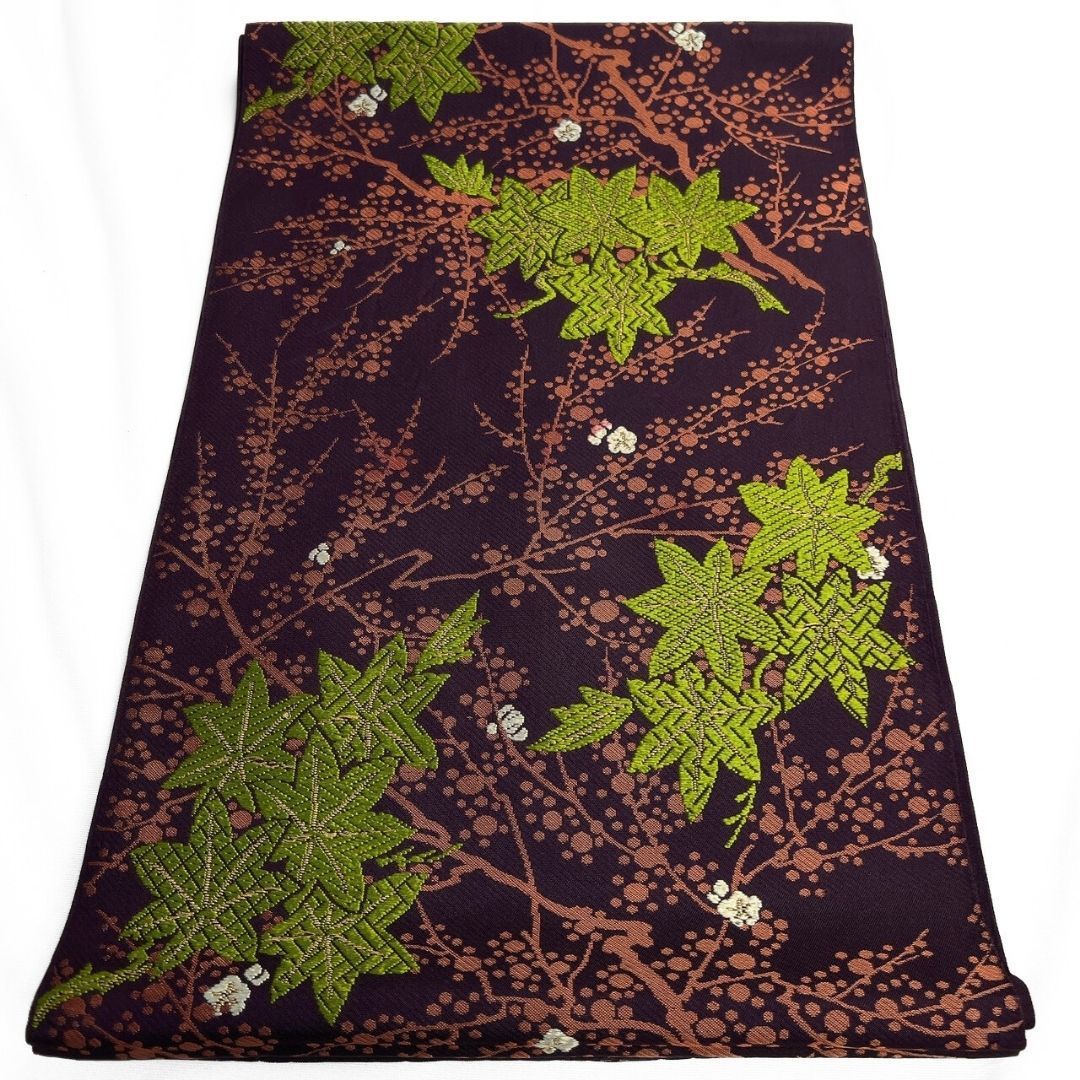 京袋帯 アンティーク 唐織 楓 梅花 花模様 着物 115 p ms
