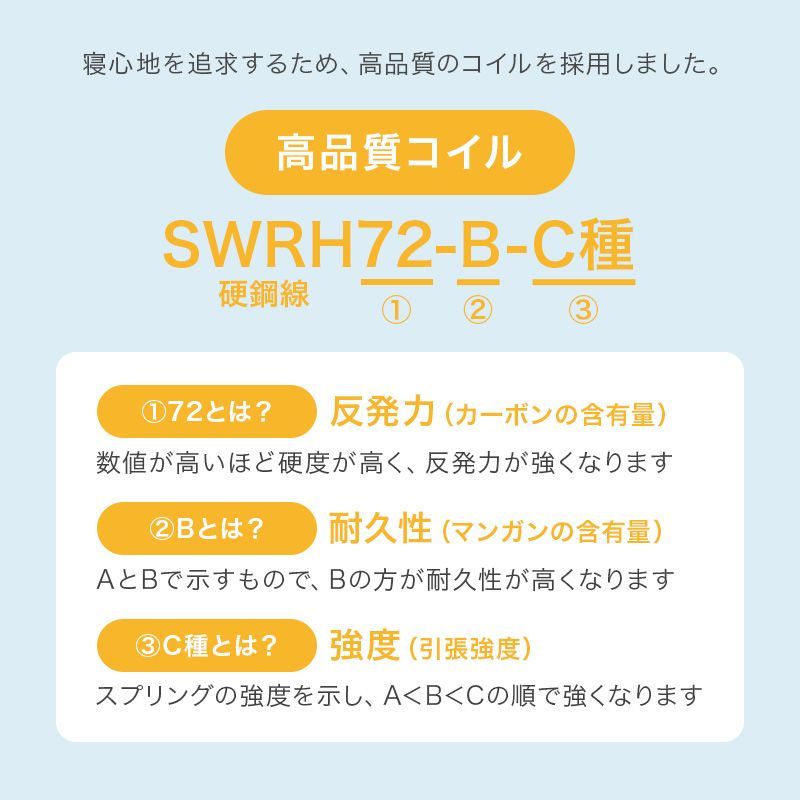 コイルの連結により耐久性が高くへたりにくくなっています。