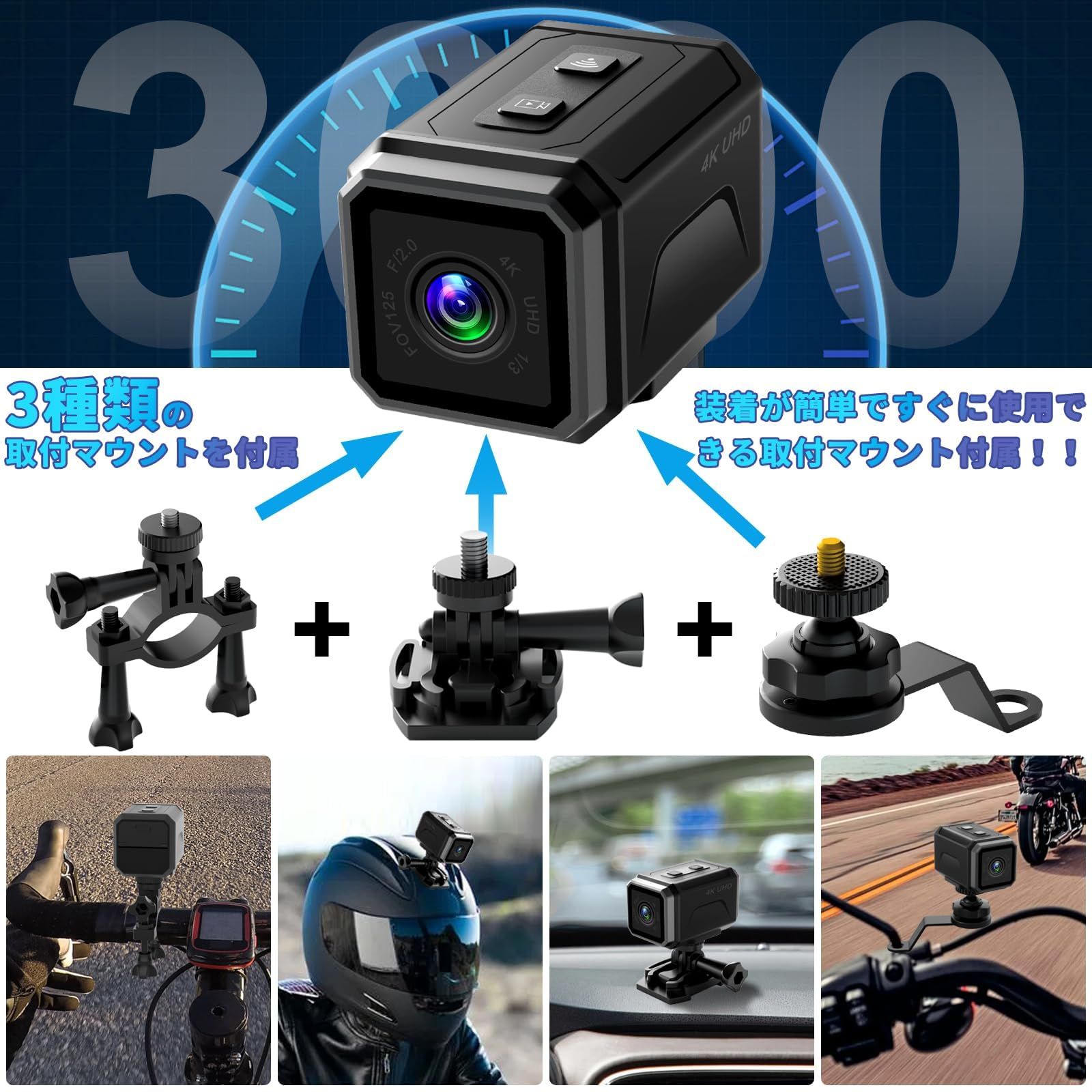 64GBカード付 バイクドライブレコーダー GPS搭載 スマホ連携 4K UHD 自転車ドラレコ フロント用 ドライブレコーダー 二輪車 800万画素 充電式 IP65常時録画 ループ録画 ミニ スポーツ ビデオ カメラ アクションカメラ 手ブレ防止 ループ録画 ハンドルバー用 日本語説明書付き