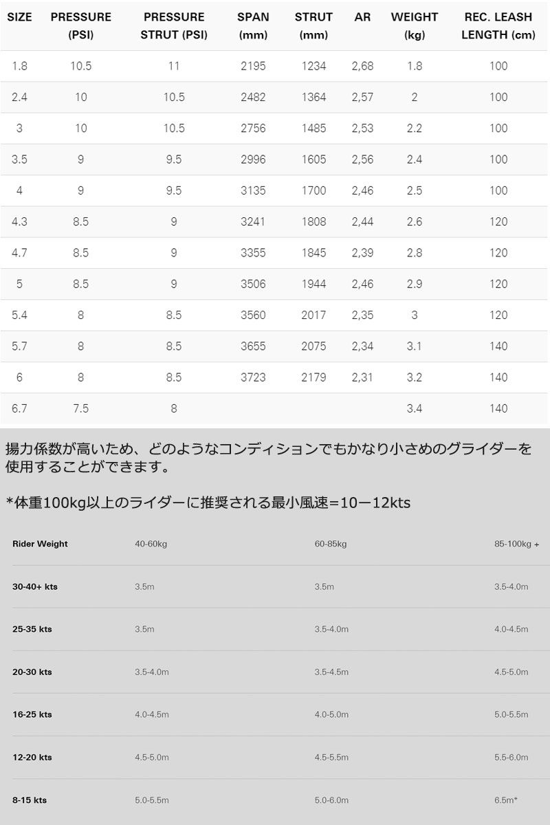FLY IIではリーディングエッジを3〜6%減らし(大きいサイズではより大きく)、空気抵抗を減らし、より高い空気圧を可能にした。