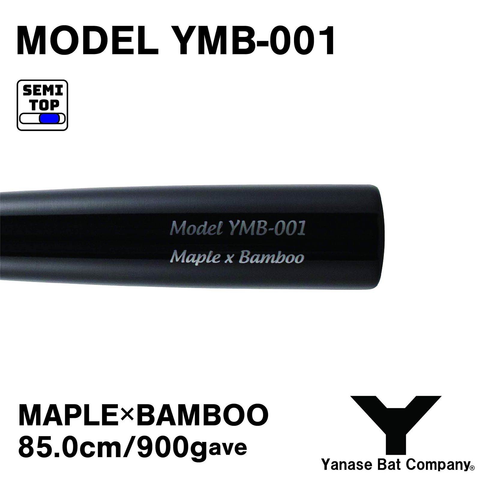 ヤナセ 硬式 木製バット Yバット バット トレーニングバット 複合バット 芯合竹 打球部メイプル×芯ラミ YMB-001 ブラック×ナチュラル 85.0 cm