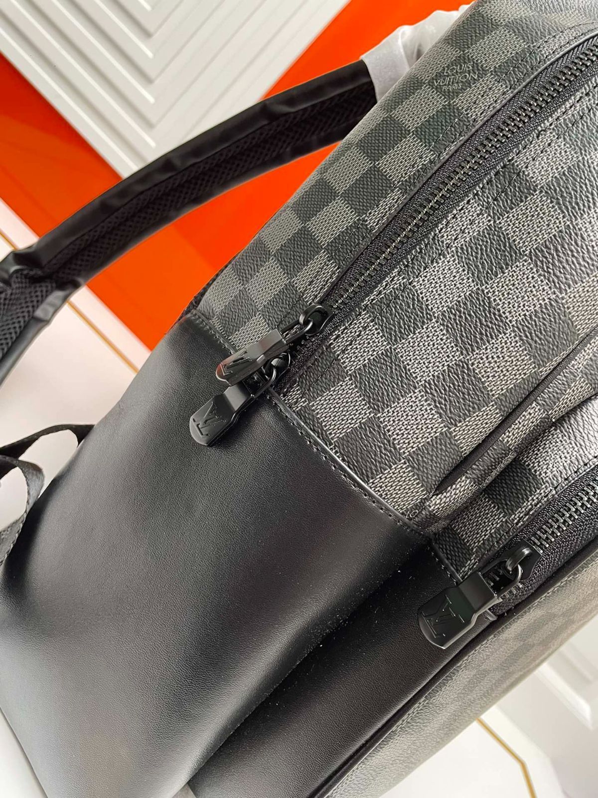 皆さん、こちらは Dean のダブルショルダーバッグです。Monogram Macassar 素材を用いて、スポーツ的な雰囲気を発散しています。プレス加工されたレザーの端とルイ・ヴィトンの花柄のエンボスが、バッグに高級感を添えています。