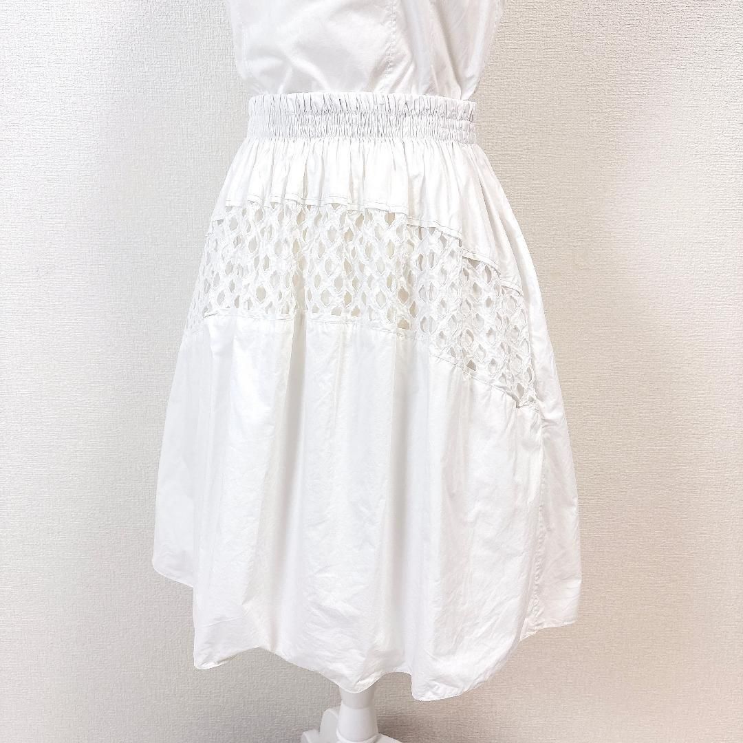 CARVEN ノースリーブワンピース 38 ホワイト メッシュ