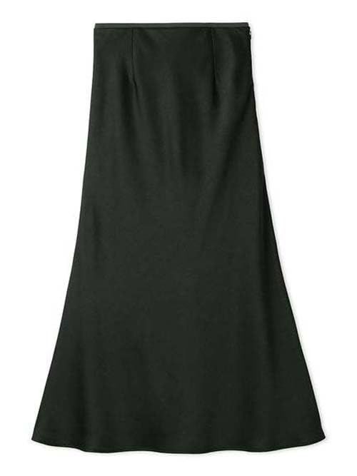 【フレア&ナローシルエットのいいとこどりしたサテンスカート】