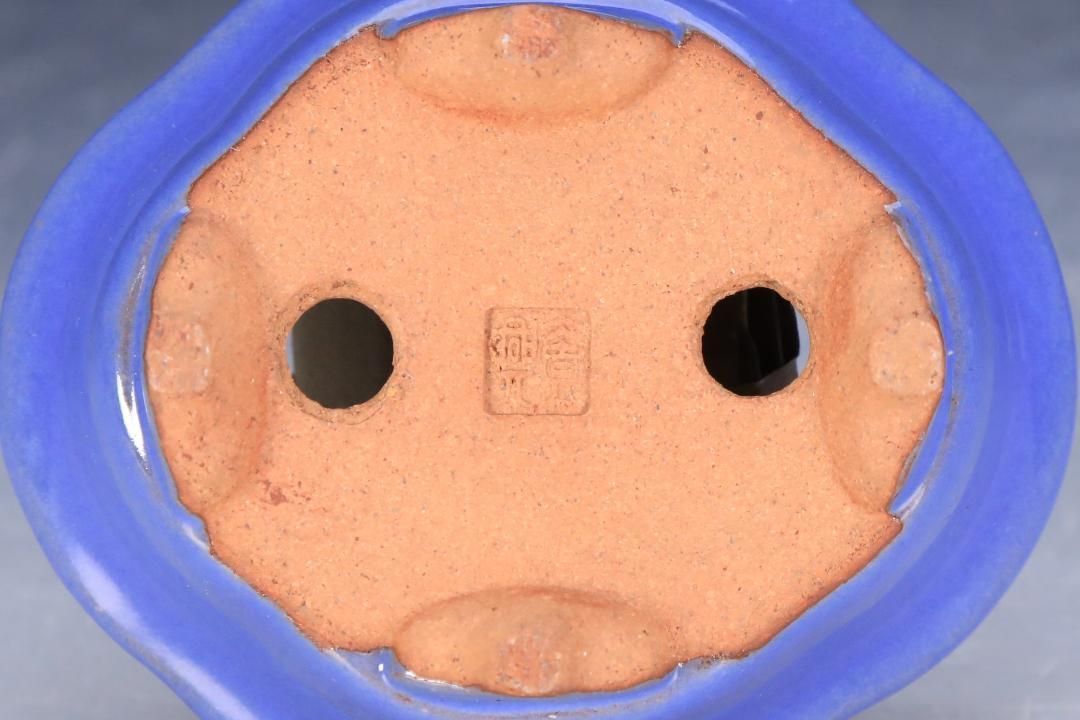 石井盆栽 渡辺壱興作 水色 盆栽鉢 p-035