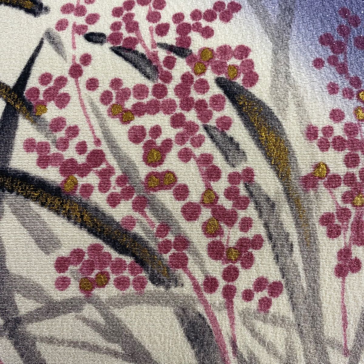 名古屋帯 秀品 落款 山科春宣 葉 実 金彩 紫 正絹