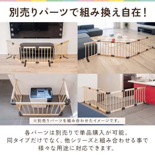 RiZKiZ ベビーフェンス 木製 置くだけ ハイタイプ 扉付き パネル 自立スタンド付き 組立簡単 組み替え テレビ 階段 ベビーゲート ベビーサークル プレイヤード 倒れにくい 育児用品 赤ちゃん 子供 室内 [幅185cm×高さ55cm]