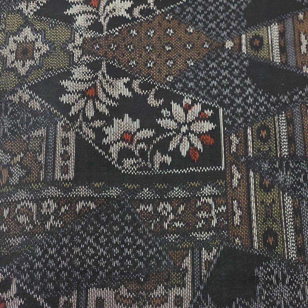 反物 秀品 紬 草花 幾何学模様 墨色 正絹