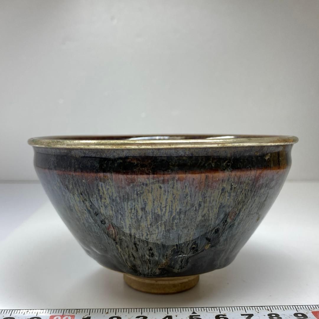 中国古玩 銀霜輪付 天目茶碗 上仕立 仕覆カバー付 共箱 直径12.2㎝タルサ