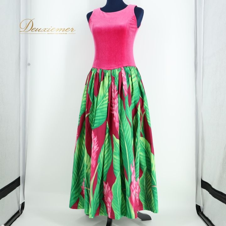 #フラダンス #衣装 #ワンピース #ドレス #ブルーヘブンカンパニー #ピンク #グリーン #ベロア #高級感 #ノースリーブ #ダンス衣装 #ステージ衣装 #パフォーマンス #エレガント #美しい #女性用 #トルソー #カスタム #特別イベント #ENUTSU