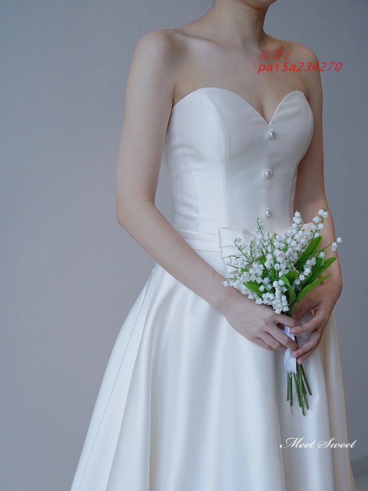 ウェディングドレス ロングドレス スレンダーライン Aラインドレス ベアトップ パールボタン ブライダル ウエディングドレス 前撮り 花嫁 結婚式 二次会 pai 5 a 234270