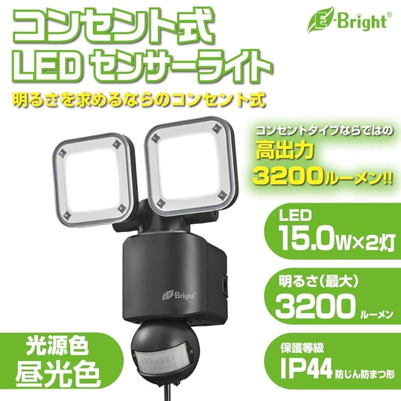 商品名:オーム(OHM) 電機 E-Bright LEDセンサーライト コンセント式 2灯 LS-A2305A19-K 06-4243black