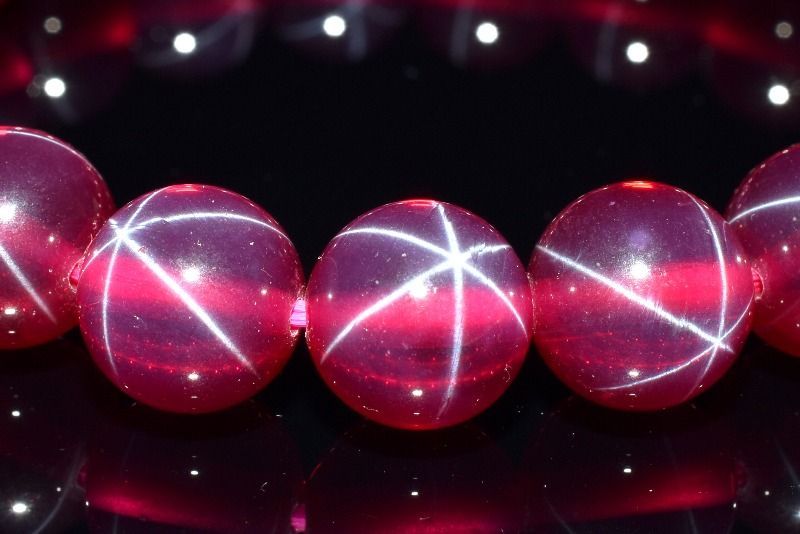 光を当てると美しいスター効果が楽しめる人気の合成石です。