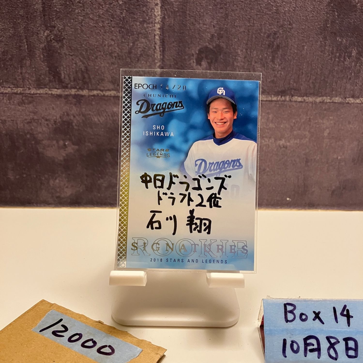 2018 Epoch 石川翔 14/20 直筆サインカード 中日ドラゴンズ STARS & LEGENDS Rookie