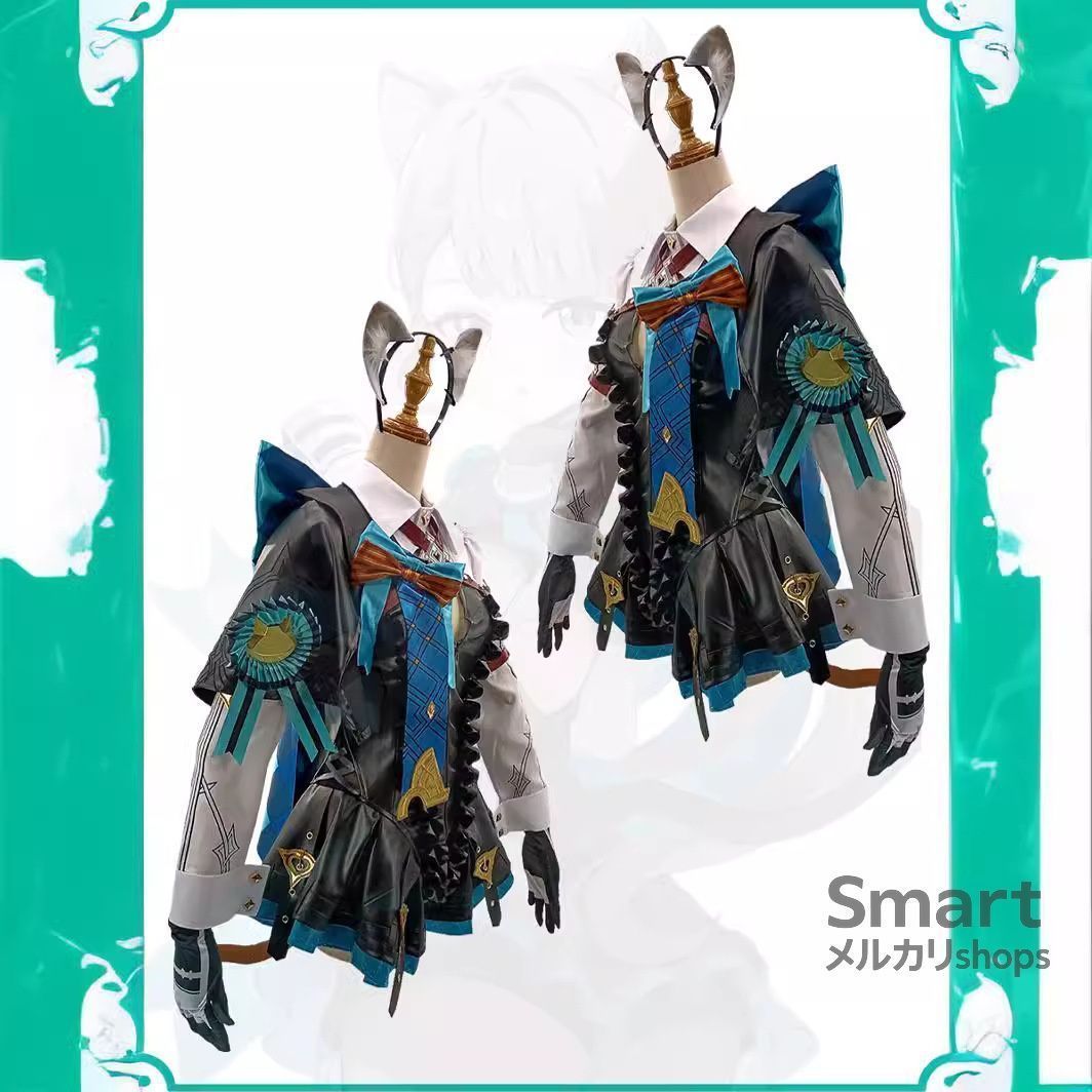 [カラー]リネット服装+アクセサリー[ジャンプスカートショール肩飾り手袋胸アクセサリー髪飾りタイツ神の目首飾りしっぽアームリング頭飾りレッグリング]