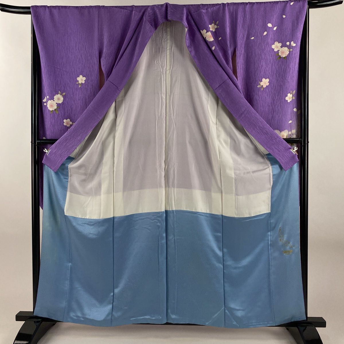 振袖 身丈161 cm 裄丈65.5 M 袷 山本寛斎 落款 桜 桜の花びら 箔 金彩 紫 正絹