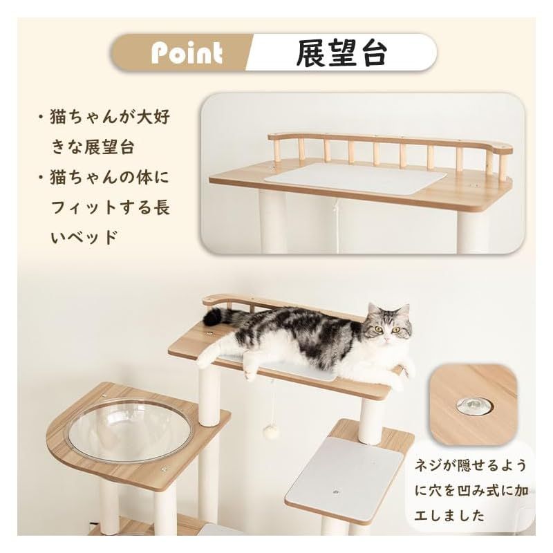 キャットタワー 木製 据え置き 多頭飼い おしゃれ シニア 高さ140 cm 大型猫 宇宙船 滑り止めマット付き クリアボウル 木目 インテリア性 大型 省スペース 成猫 子猫 中型猫 安定性高い 上下しやすい 木登り どっしり インテ 0