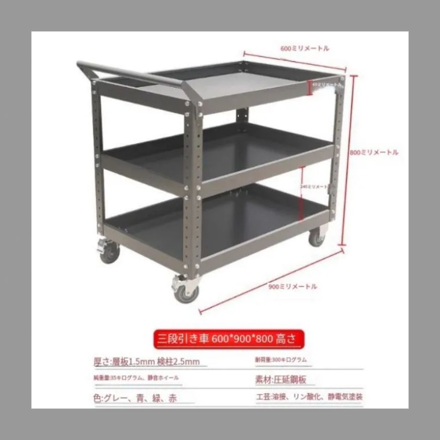 灰色三層製品車の検査車の強化作業場カートの高メンテナンス鉄ハンドルカート工具車