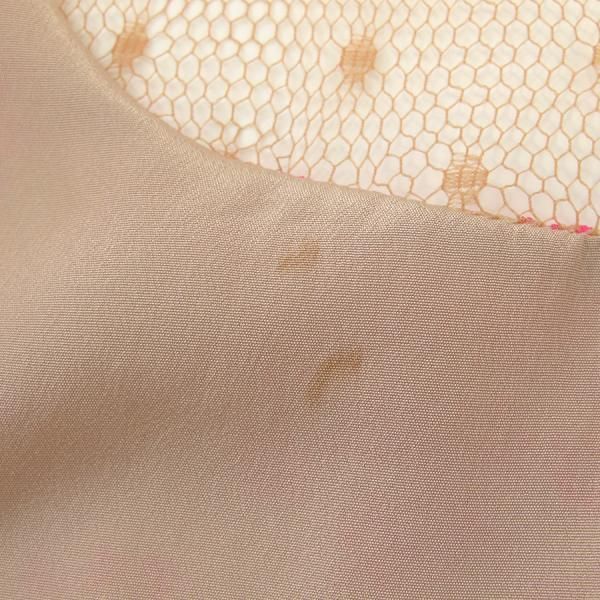 ■採寸#46肩33.5cm袖4cmB92cmW78cm丈84cm■素材表:シルク100%裏:ナイロン100%レッドバレンチノからシフォンワンピースの入荷です☆ピンクの花柄のペイントがとても可愛らしく、シフォンのお素材で上品なデザインです◎デコルテ部分はレース素材で大人っぽく、パーティや結婚式にも活躍しそうな一着◎前側の胸元の裏地にしみ汚れ、柔軟剤のような匂いと、透け感が少しあるので下にキャミソールやインナーを着るのをおススメします。当店おススメ商品です☆