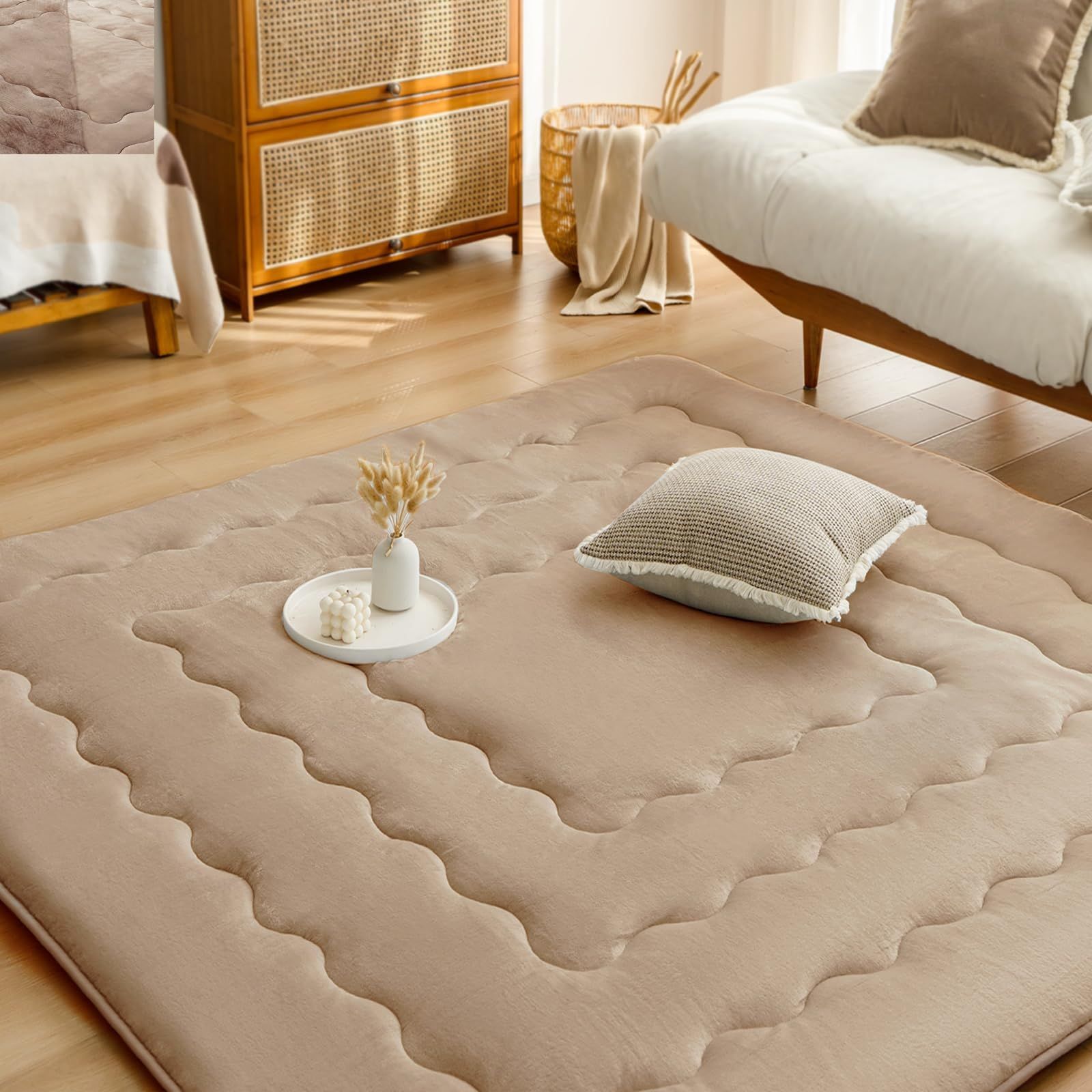 【床暖房対応】裏地滑り止め加工あり、床暖房も対応可能。こたつマットとしてだけでなく、ふかふかなラグとしてもズレずに快適に使える。