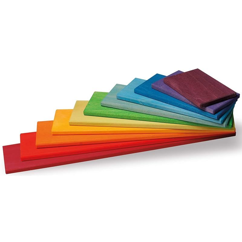 彡グリムGRIMM S 玩具 おもちゃ 知育玩具 木製 積み木 見立て遊び ボード 幅37×奥行7×厚み0.8 cm 最大パーツ レインボー ビルディングボード 0