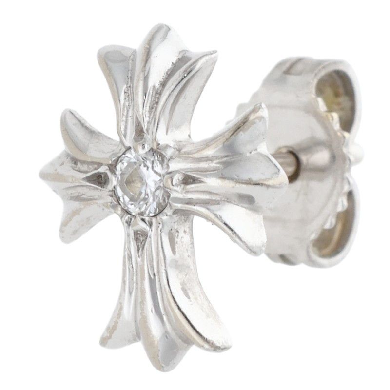 クロムハーツ 18 K No 2 CH CRS DIA CHクロススタッド 1ダイヤ ホワイトゴールドピアス メンズ
