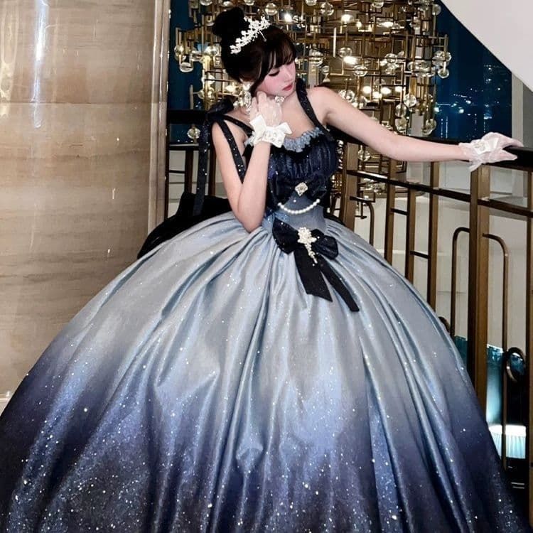 ️夜空のグラデーションが美しいゴシックプリンセスロングドレス
