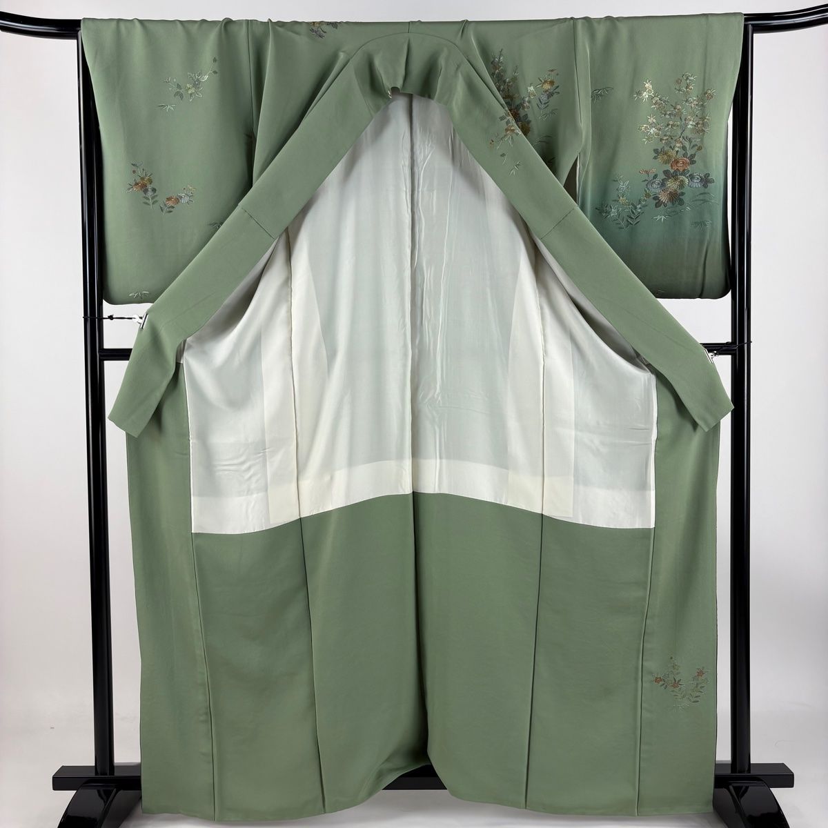 訪問着 身丈163.5 cm 裄丈68 L 袷 花車 松竹梅 翠山刺繍 金糸 薄緑 正絹 一つ紋