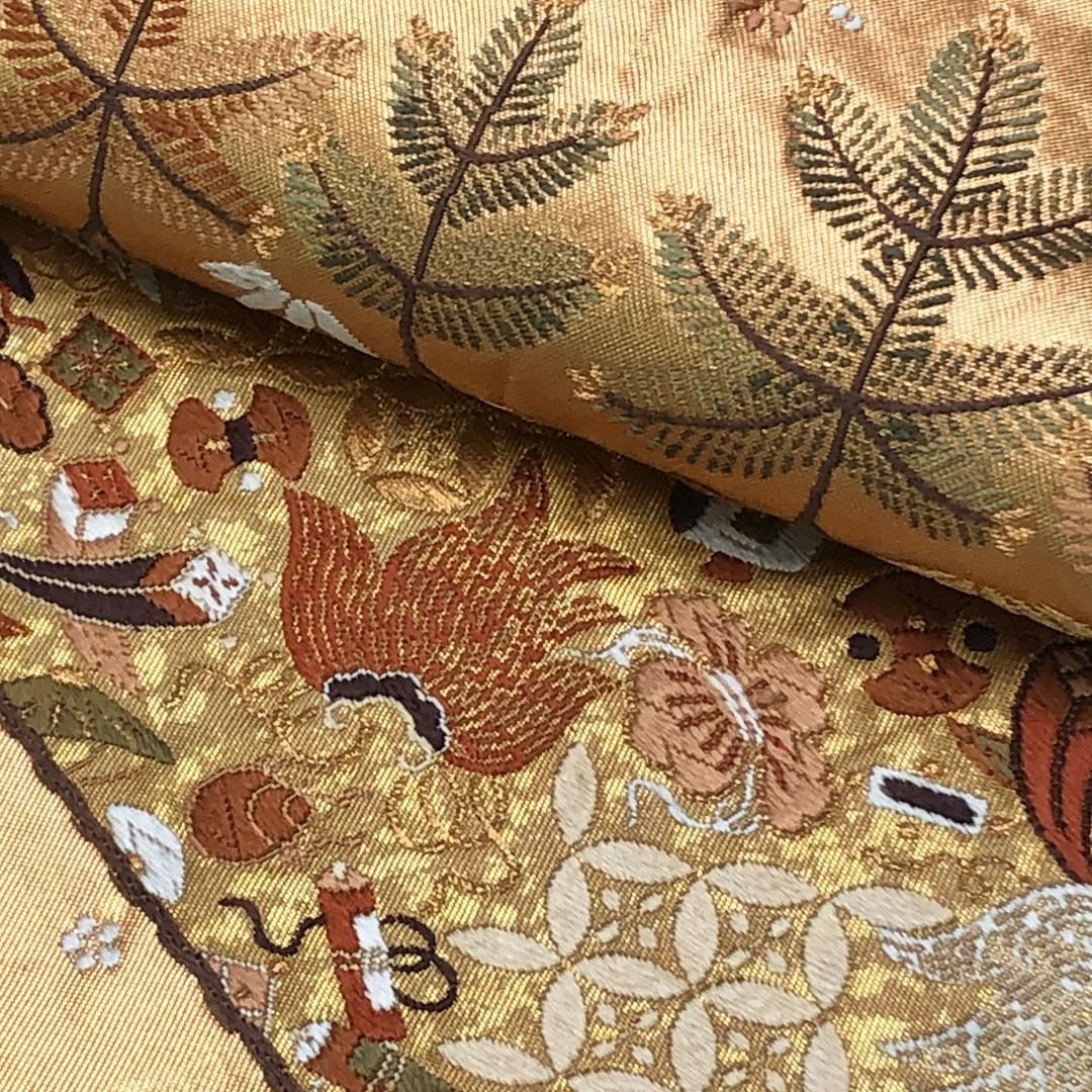袋帯 西陣 河合美術織物 豊明錦 宝尽くし 松竹梅 金糸 金色 O-5656