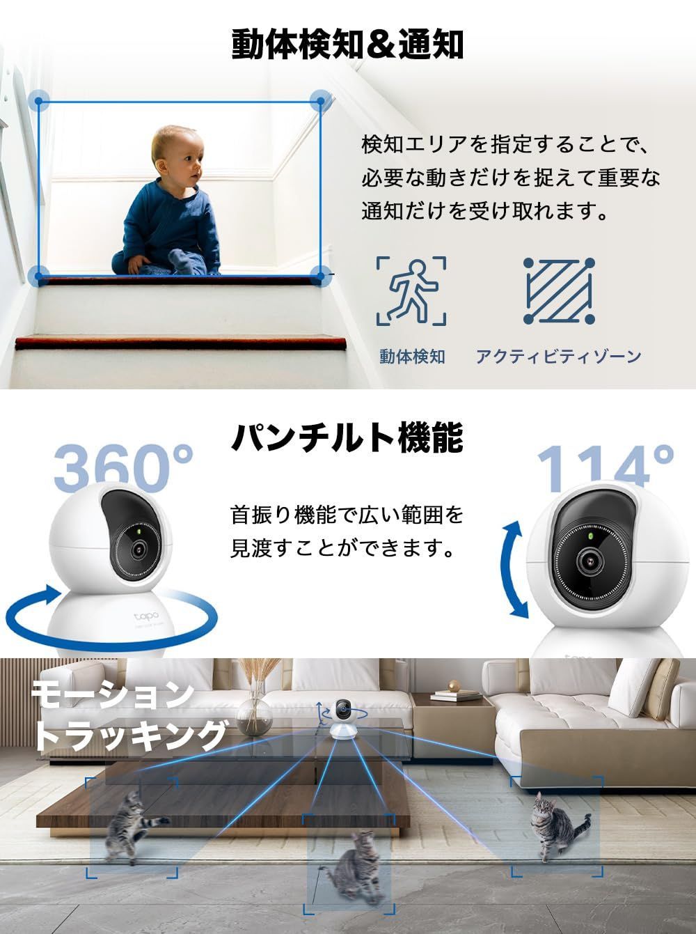 【特徴】高解像度の見守りカメラ、Tapo C230/Aが登場。3K 5MP QHDの高解像度を実現。