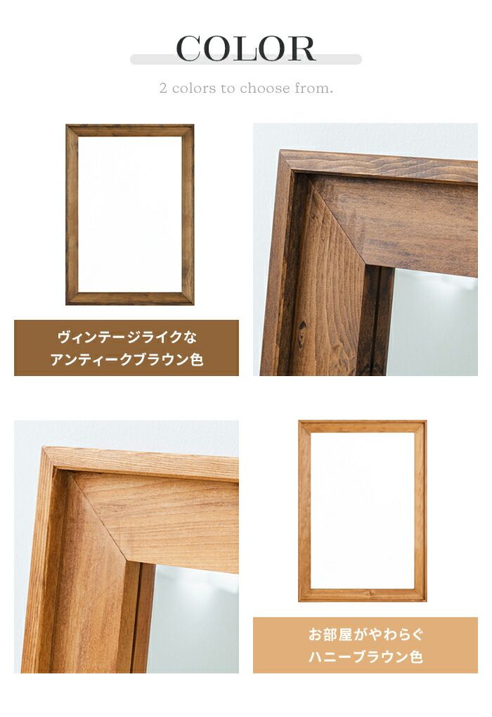 ウォールミラー 長方形 幅73 高さ101 鏡 壁掛け ミラー 姿見 飛散防止 木製 フレーム 木目調 ワンルーム 玄関 洗面所 アンティーク 新生活 一人暮らし
