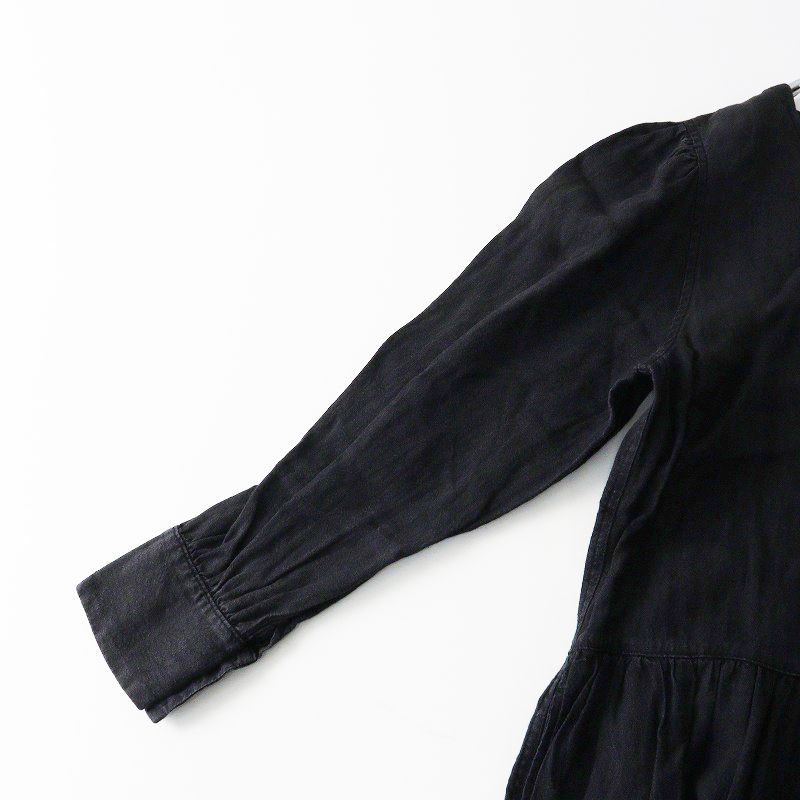 【品名】イチ ichi アンティークス ノワール Antiquites noir リネン ノーカラー ギャザー ワンピース |ブラック