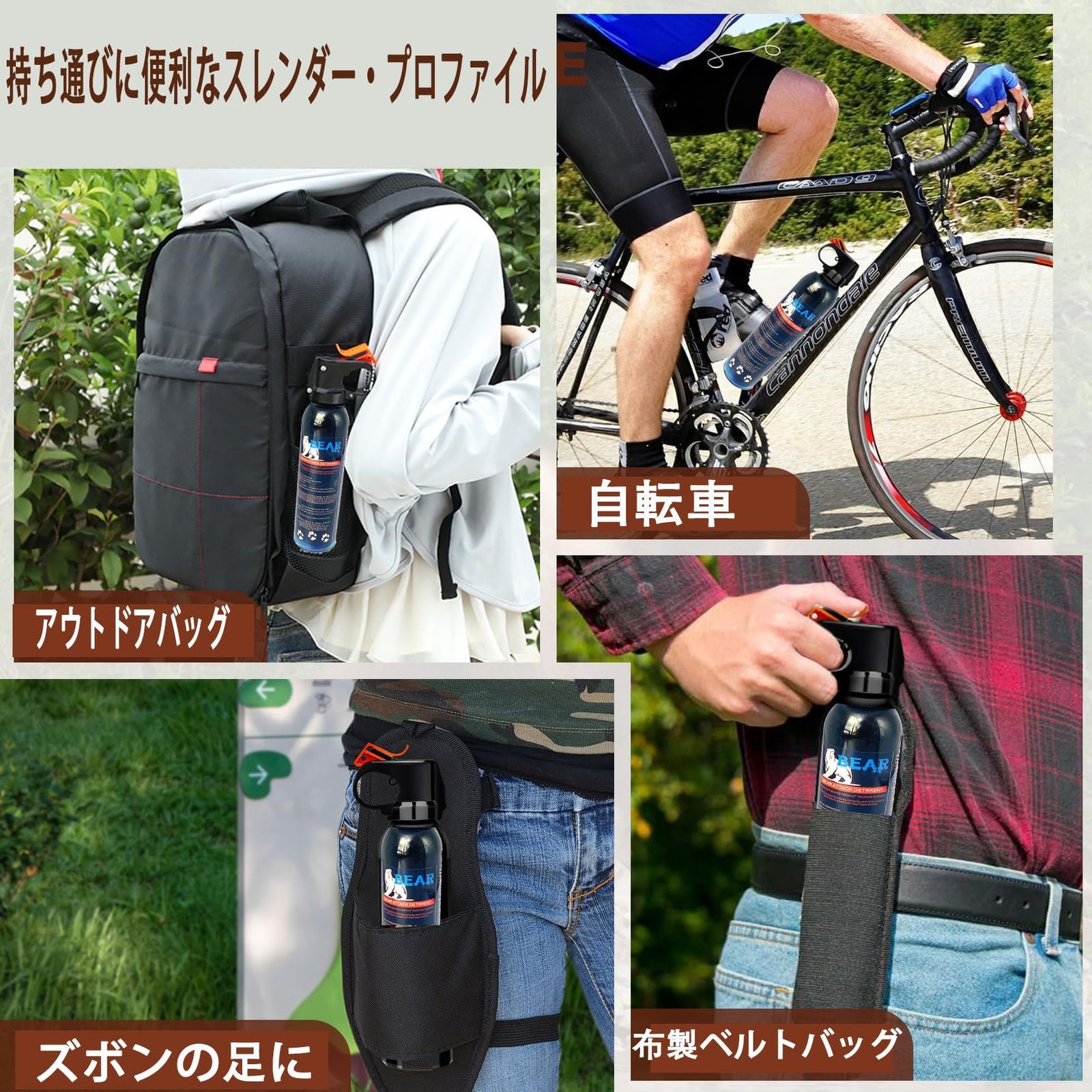 アウトドアの心強い味方:登山・キャンプ・ハイキングなど自然の中での活動時、予期せぬ場面への備えとして、安全性をサポートするスプレーです。