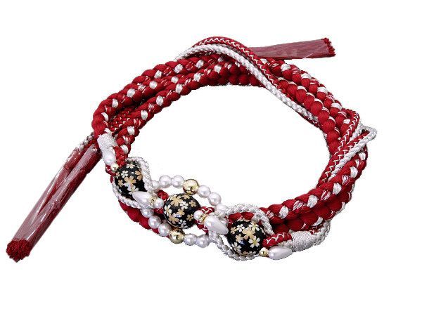 着物美人 送料込み! 帯締め パーツ付き 赤 銀 パール 転写玉 m351412E