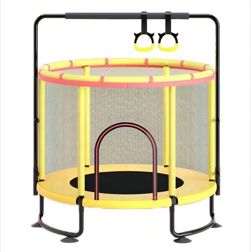室内用トランポリン二層フレーム構造安全静音設計耐荷重150 kg直径140 cm補助手すり付き家庭用大人子供用トランポリン室内クササイズトレーニングセーフティネット付きトランポリン組み