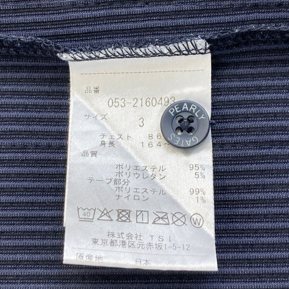 サイズ 3 PEARLY GATES パーリーゲイツ サイドロゴ 半袖ポロシャツ ストライプ柄 ネイビー系 ゴルフウェア メンズ ストスト